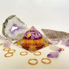 Orgonite Pirâmide - Saint Germain - Raio Violeta - Transmutação - Ametista - 6cm